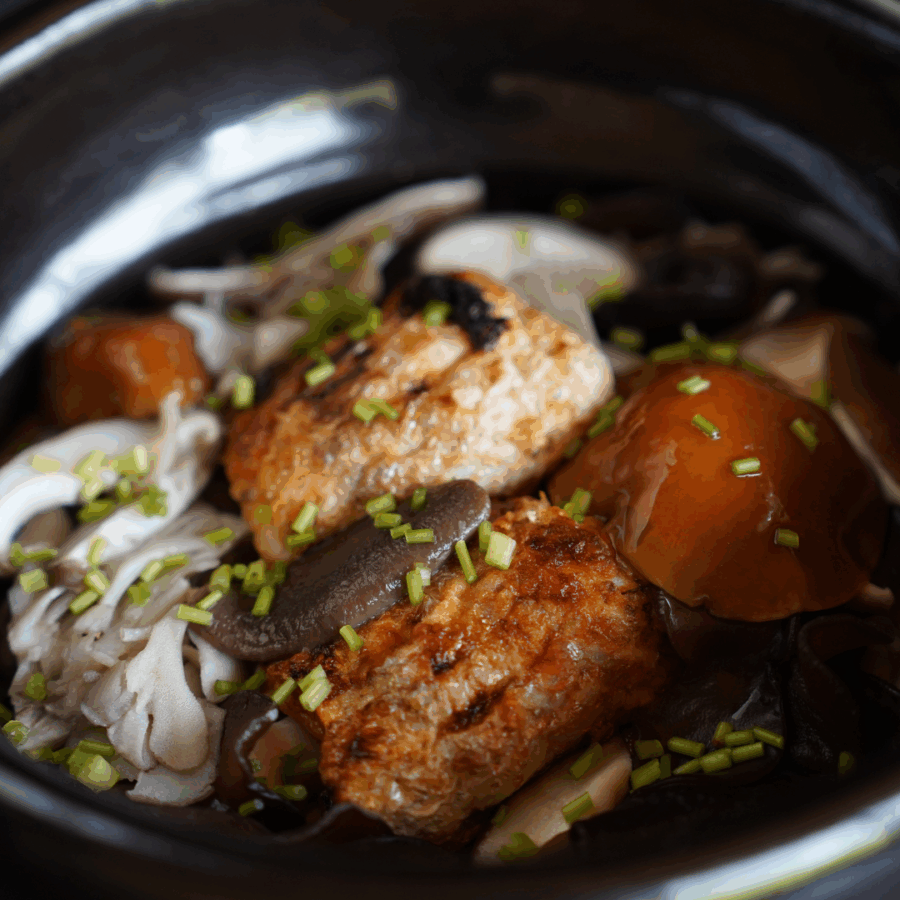 橋立港でとれたホクホクで柔らかい甘鯛の身と、4種類のキノコをふんだんに使用した贅沢なお鍋です。寒い季節にぴったりの温かい一品をお楽しみください。